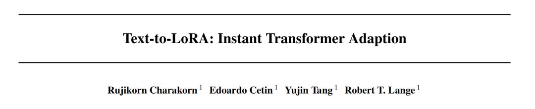 由Transformer作者之一Llion Jones联合创立的明星AI公司SakanaAI,近期推出Text-to-LoRA (T2L),彻底简化了模型适配流程: